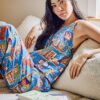 Meet your new reading companion. This cotton pajama set in blue features playful pups lounging among book stacks, in a hand-drawn print on breathable organic cotton. The chic sleeveless top pairs with wide-leg pants featuring a comfortable cropped length and pockets. Perfect dog print sleepwear for book lovers. Explore more cropped pant sets, pajama sets, and pajamas.