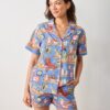 Playful pups lounge among beloved books in this short pajama set. Crafted from breathable organic cotton in a charming Bookkeeper Blue, this dog print pajama set features a relaxed silhouette with a button-down top, comfortable shorts, and pockets. Perfect blue cotton PJs for bedtime stories and quiet mornings with a good read. Explore more charming hand-illustrated prints in our pajama sets and short sleep sets.