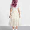 Wednesday’s style encompasses minimal tones, mainly White in various shades, fabrics and silhouettes. Towards the end of the season we see Wednesday adorned in a maxi White ruffled dress to prom. If you’re not a fan of all White clothes, now is the time to divulge into it and explore a different look and if you are, you’re welcome.