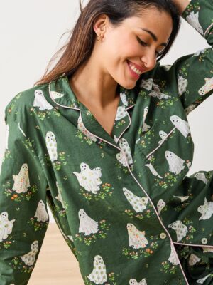 2025 Two-piece Set Women’s Christmas Print Button Front Pocket Shirt & Elastic Waist Pants Pyjama, Casual Comfy Long Sleeve Collared Top & Trousers Pyjama Set, Women’s Sleepwear for Spring & Fall