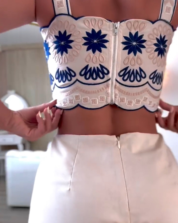 Women’s Sexy Embroidered Suspender Top and Short Rompers Outfit